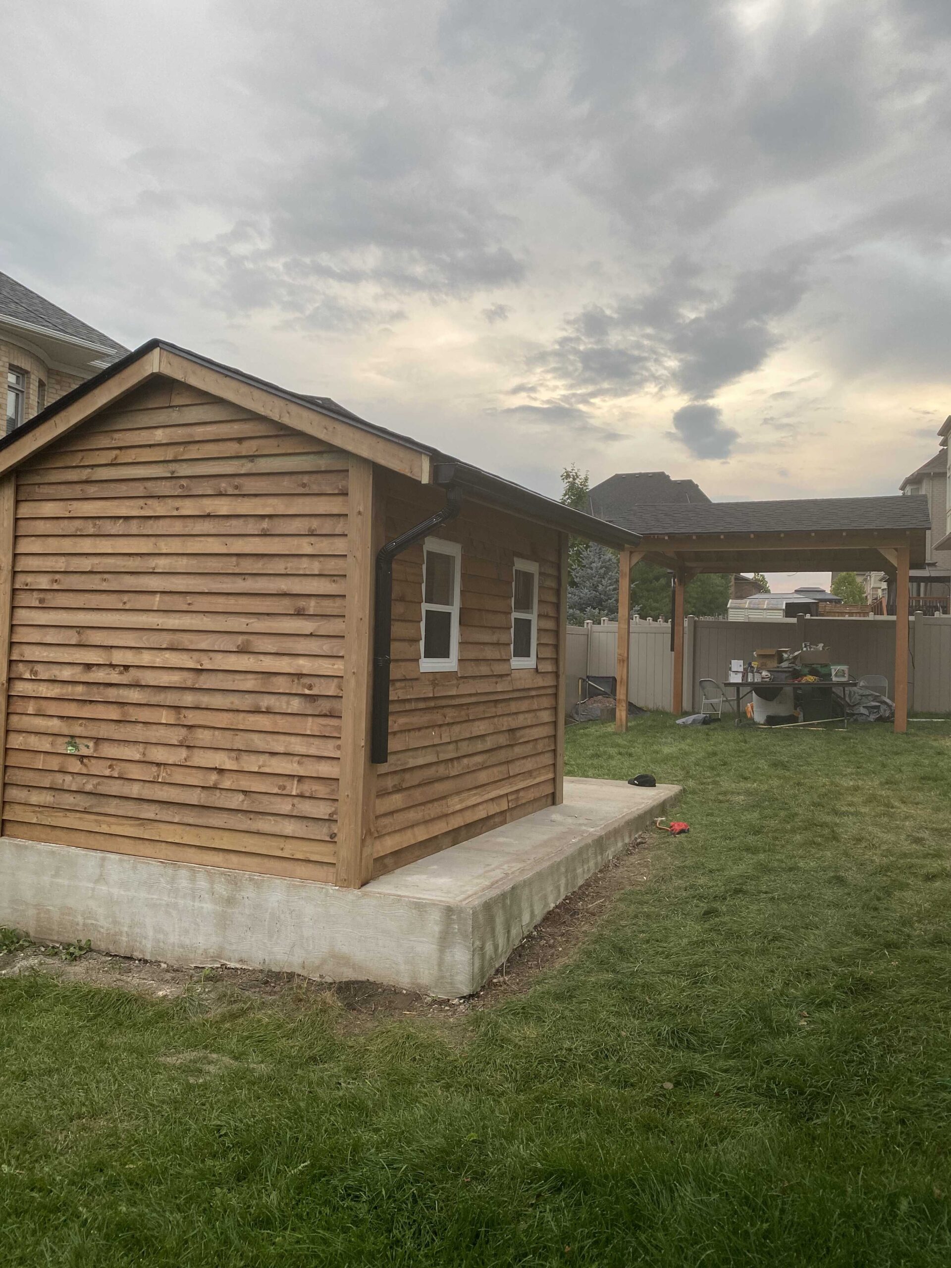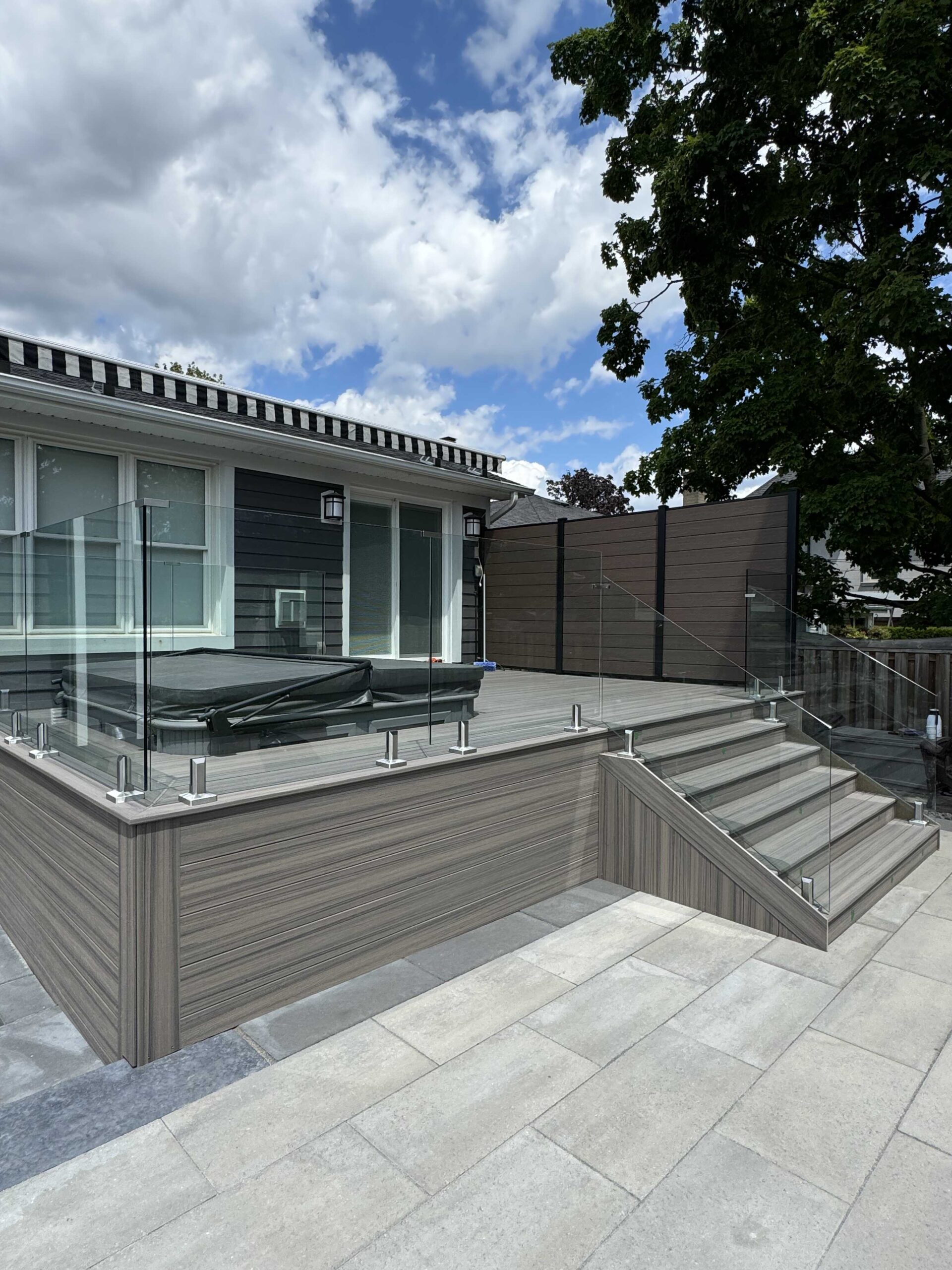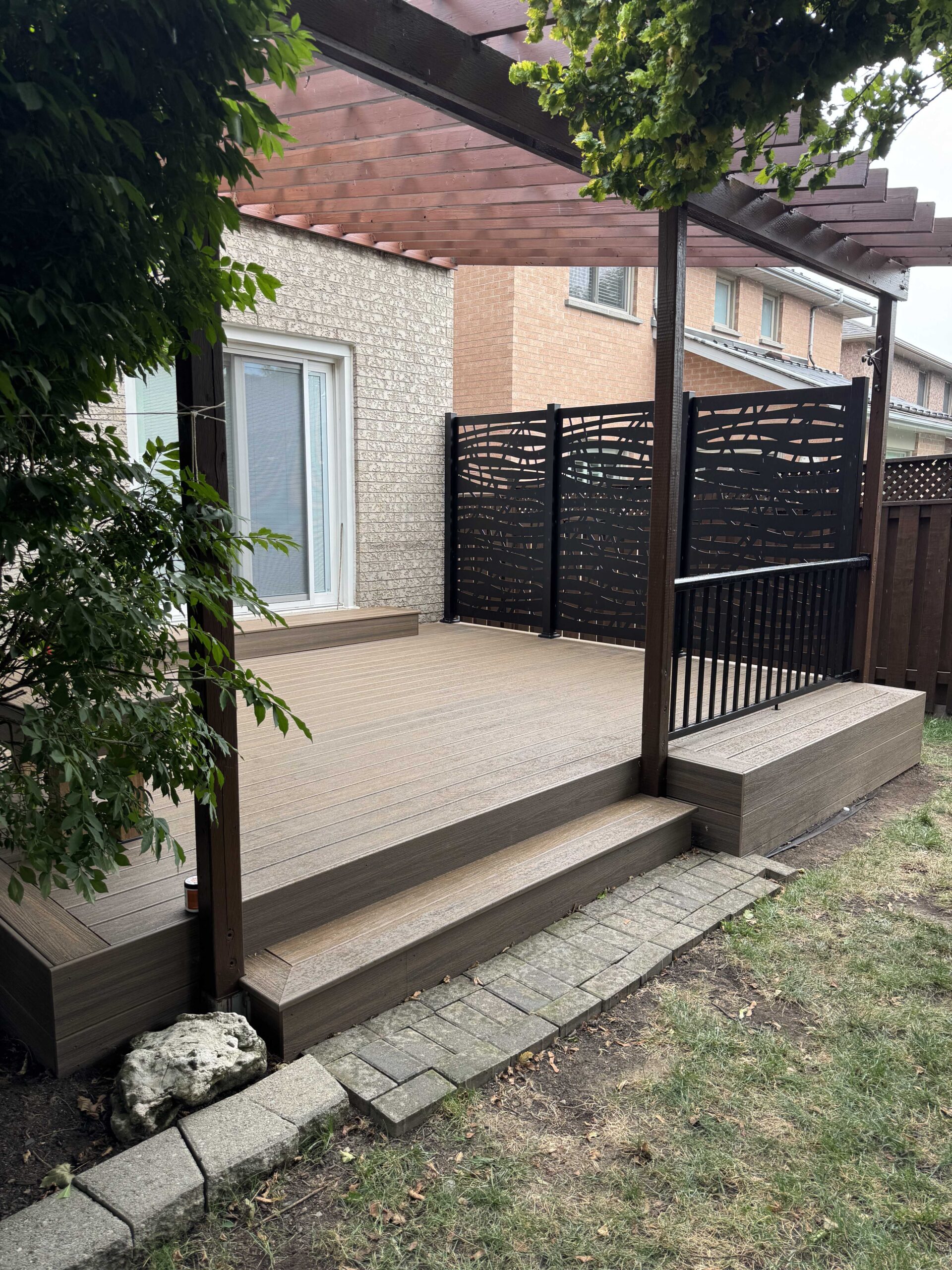 This Oakville project was a premium backyard upgrade with a custom look. The photos show detailed finishing, a clean deck surface, and a covered section that adds comfort and shade. We built everything with strong framing, safe access, and polished trim work. The final deck feels like an extension of the home and is perfect for relaxing and entertaining outdoors.