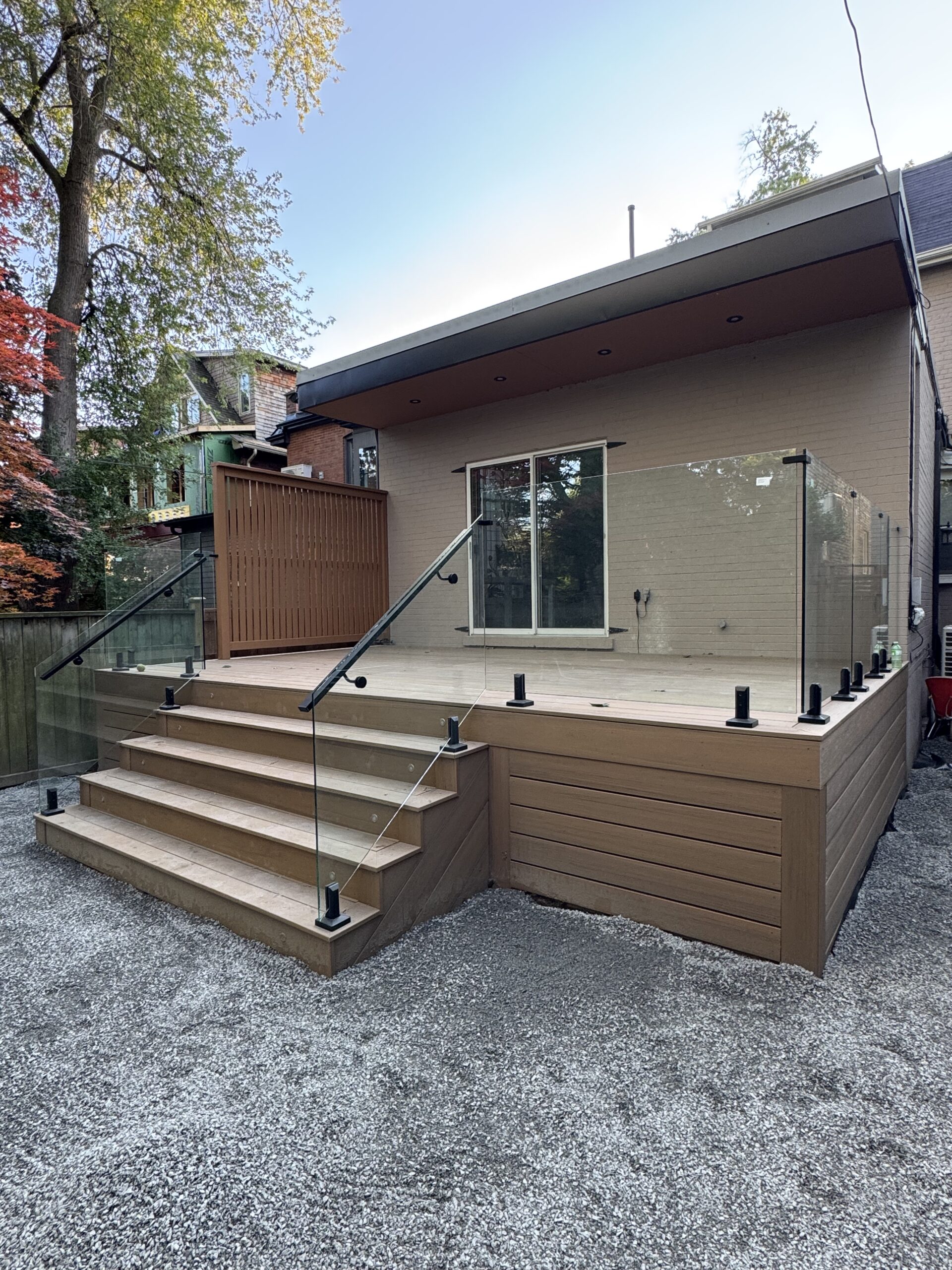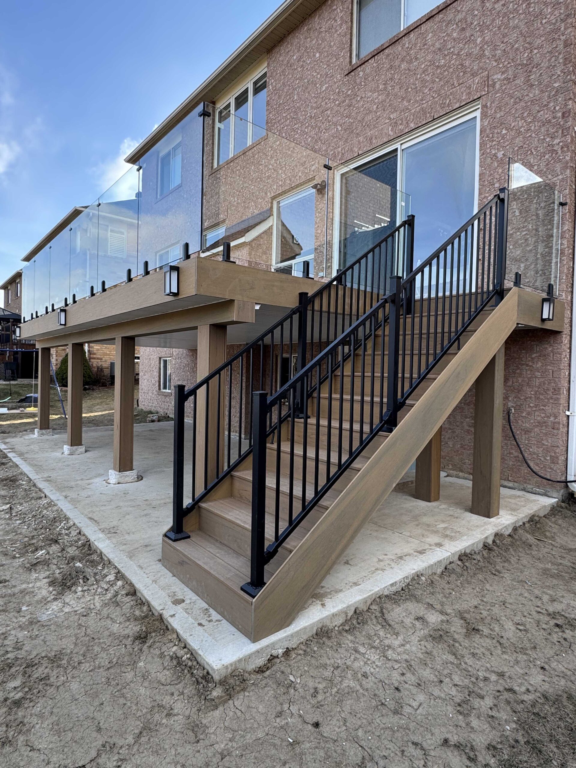 This Woodbridge deck was designed to look clean, modern, and high end. We installed a strong deck structure, finished the surface with consistent board spacing, and added sleek railings for safety and style. The deck fits the backyard perfectly and gives the home a polished outdoor upgrade. A great example of premium finishing and durable construction done the right way.