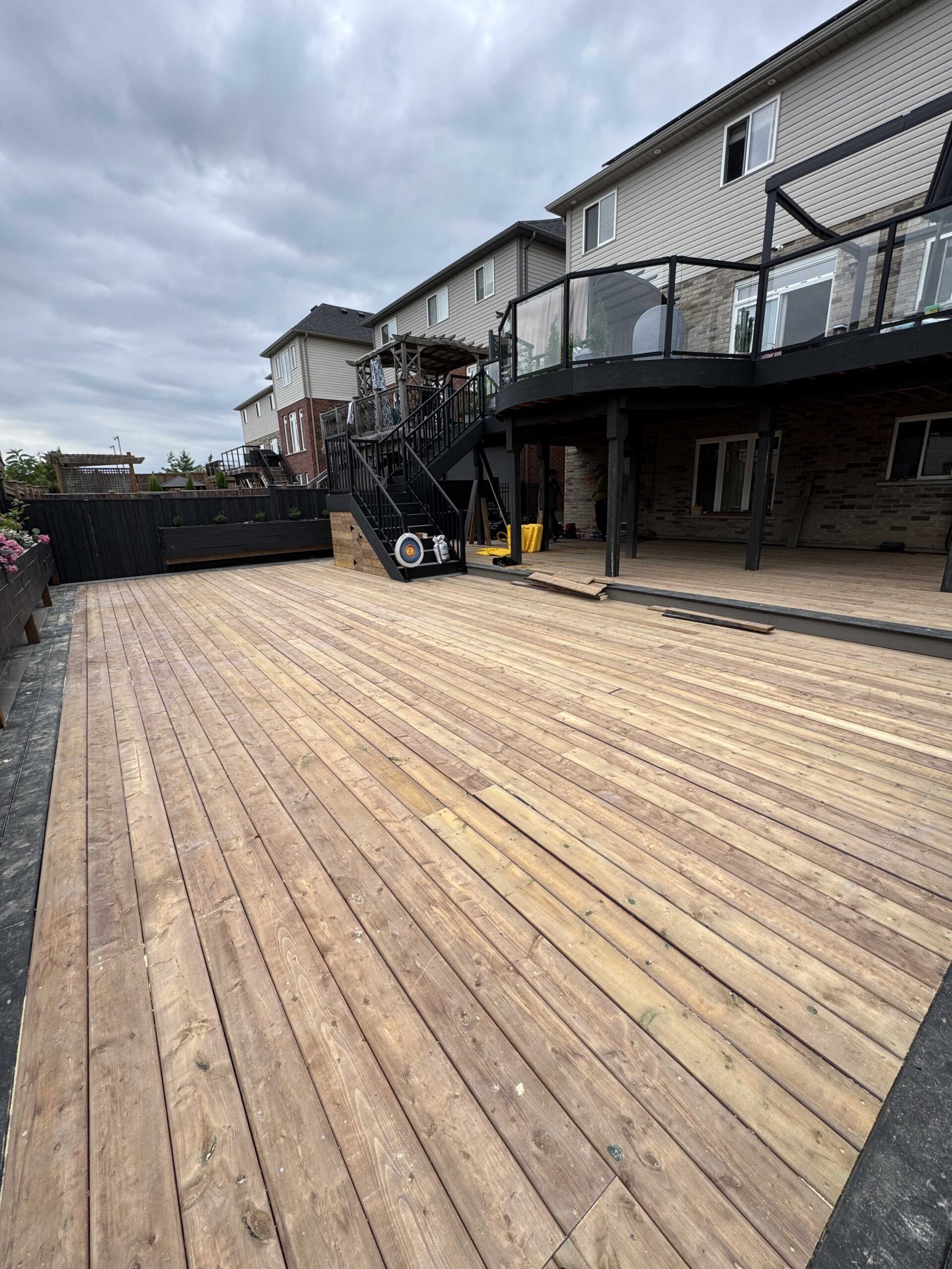 This Brampton deck was a complete outdoor upgrade with a clean, professional finish. We built strong framing, installed the surface with consistent board spacing, and completed the railings and stairs for safe access. The project was designed to create a large usable backyard area that feels comfortable and solid. A great example of a deck built with quality and care.