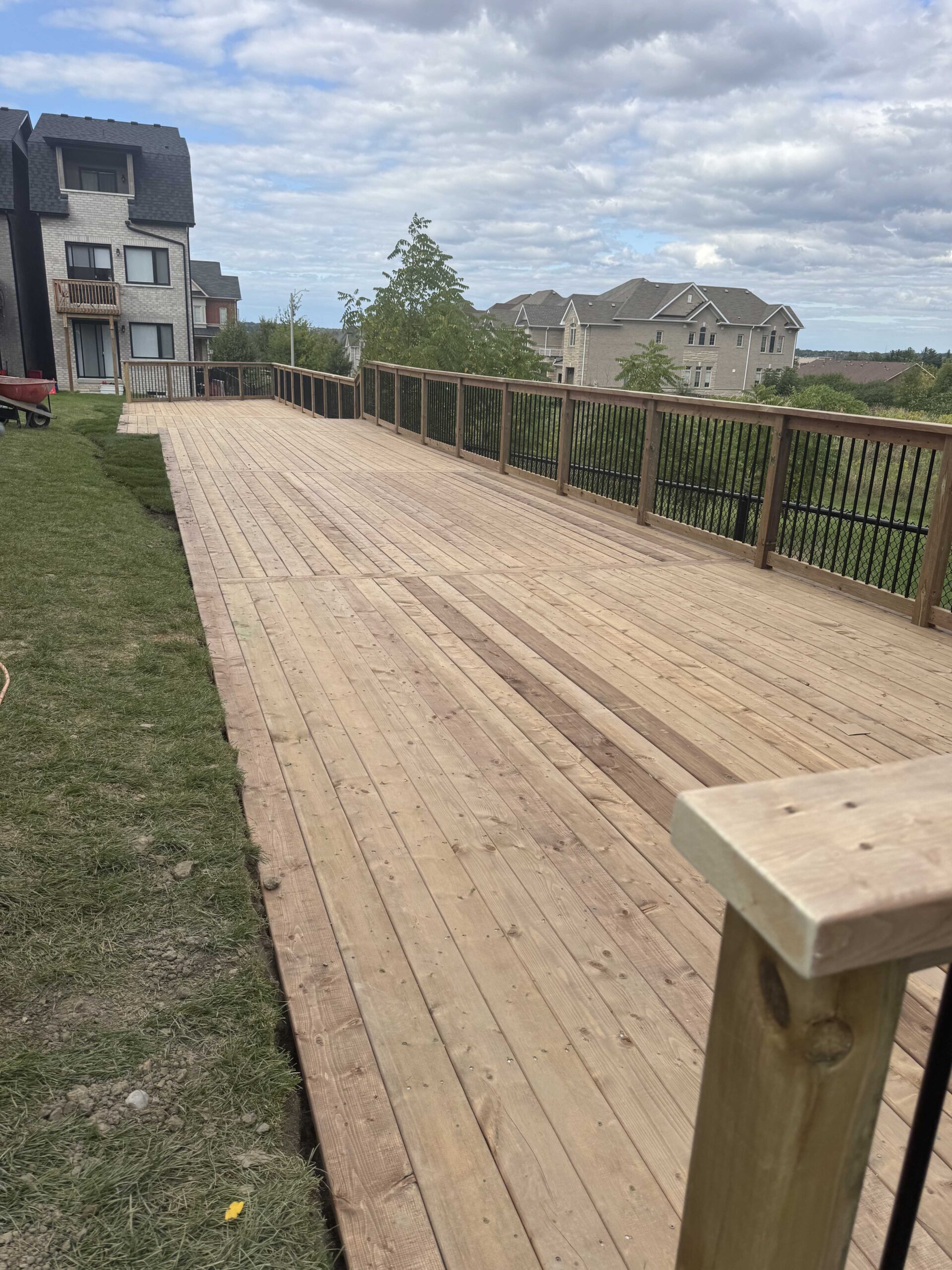 For this Milton deck, we focused on clean structure and a modern finished look. The deck surface was installed with straight board alignment and professional railing work for safety and style. The layout was planned to maximize usable backyard space and create a comfortable area for relaxing. This project is a great example of a clean residential deck built with long term durability.